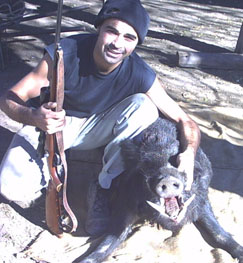 El silencio llego nuevamente de golpe tipo 4 de la madrugada y empezaron a comer de nuevo y se sentia como si fuese un campo de tiro el ploc ploc ploc de los tallos de sorgo que cortaban, ya habian tirado plantas panojas al por mayor en esos dias. En eso siento un chasquido casi emperceptible al oido estaban masticando muy cerca mio , pero muy cerca de verdad, la luna se estaba achicando y la tenia de espaldas cosa que me complicaba demasiado, despacio agarre el fusil sin casi hacer movimiento me acomode en camara lenta, ya no me daban mas pelota ahi arriba, y miro hacia abajo y veo un chancho comiendo justo abajo del gajo donde estaba yo todo acalambrado e inmovil casi no podia sostenerme sentado del calambre que tenia, gire el fusil como pude hacia abajo calcule mas o menos y gatille al mismo momento que iba cayendo del calden acalambrado de todos lados, trate de que no se golpee el fusil y senti el golpe de castigar contra el piso de espalda, el chancho pateaba herido agonizante y yo casi lloraba del calambre a su lado. Asi estuve durante casi 10 minutos al principio me arrastre hasta el chancho lo degolle y me eche en el lomo porque me daba algo de calor.. jjajajjaa que locura no?