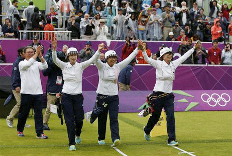 El trío coreano Ki Bo-bae, Lee Sung-jin y Choi Hyun-ju anotó 210 puntos en sus 24 flechas para vencer a China por un solo punto. Contando que cada flecha puede marcar un máximo de 10 puntos por impacto en el centro de una diana a 70 metros de distancia.